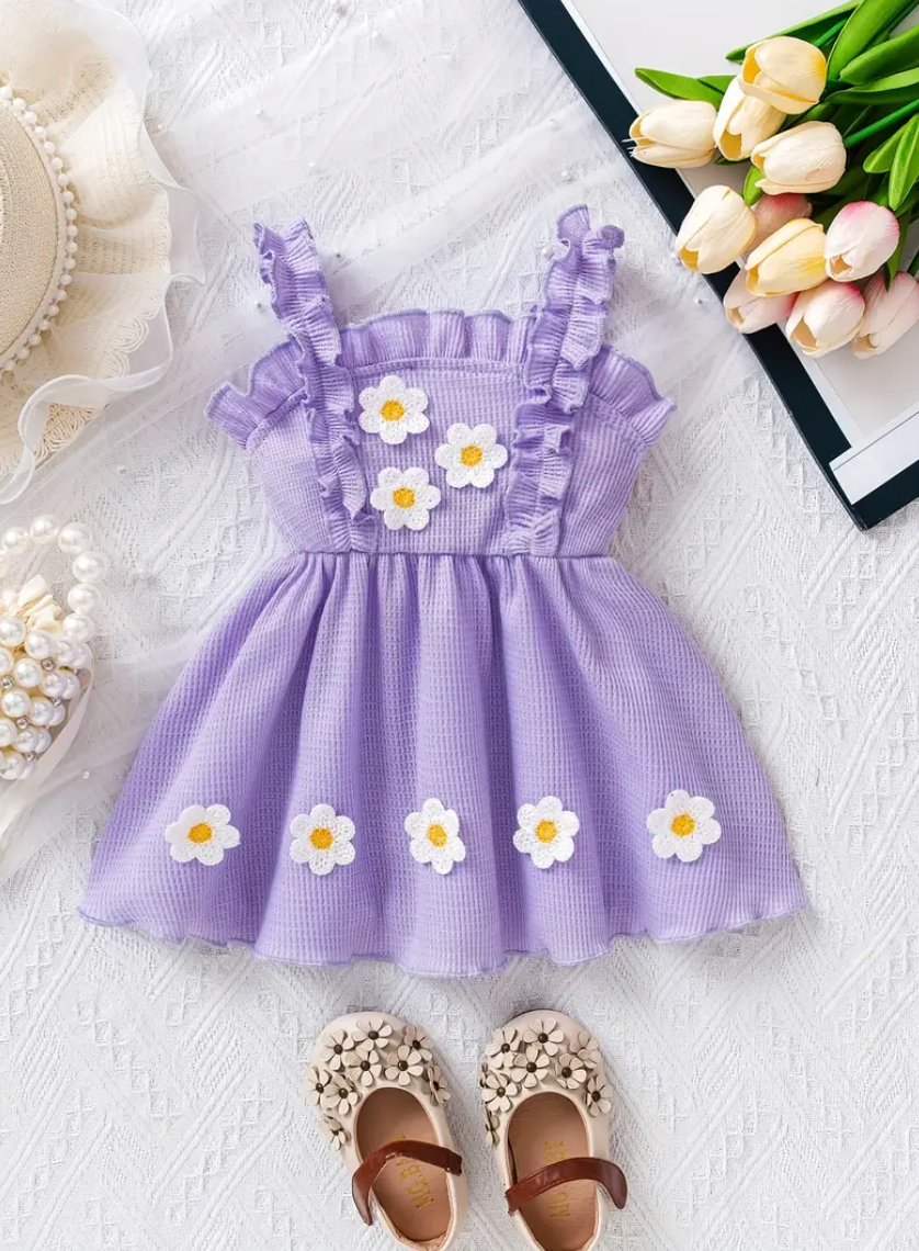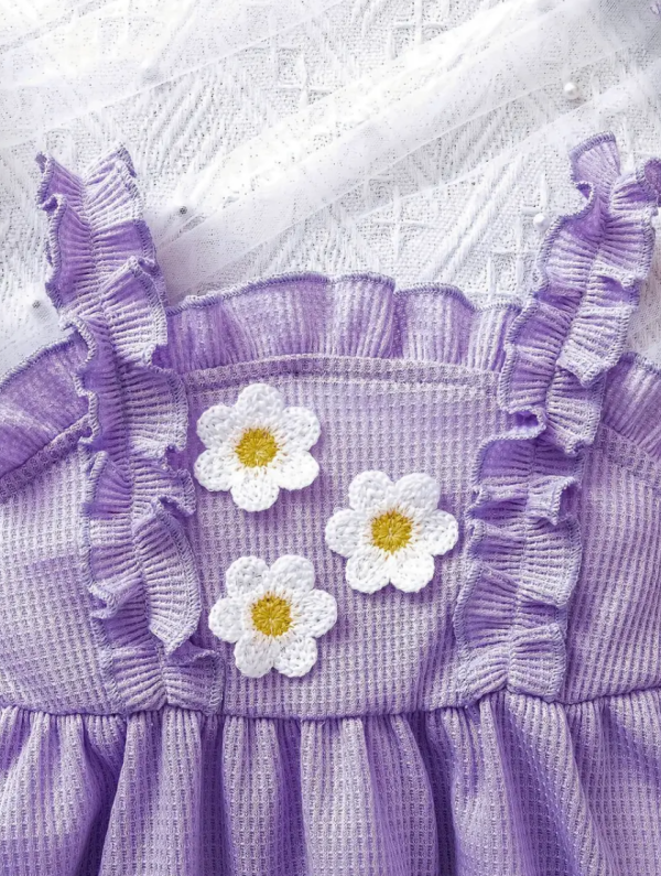 Girls’ Cute Floral Purple Lace Dress