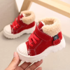RED Boys Girls Warm Plus Thicken Velvet Cotton Shoes Waterproof Baby Cotton Shoes