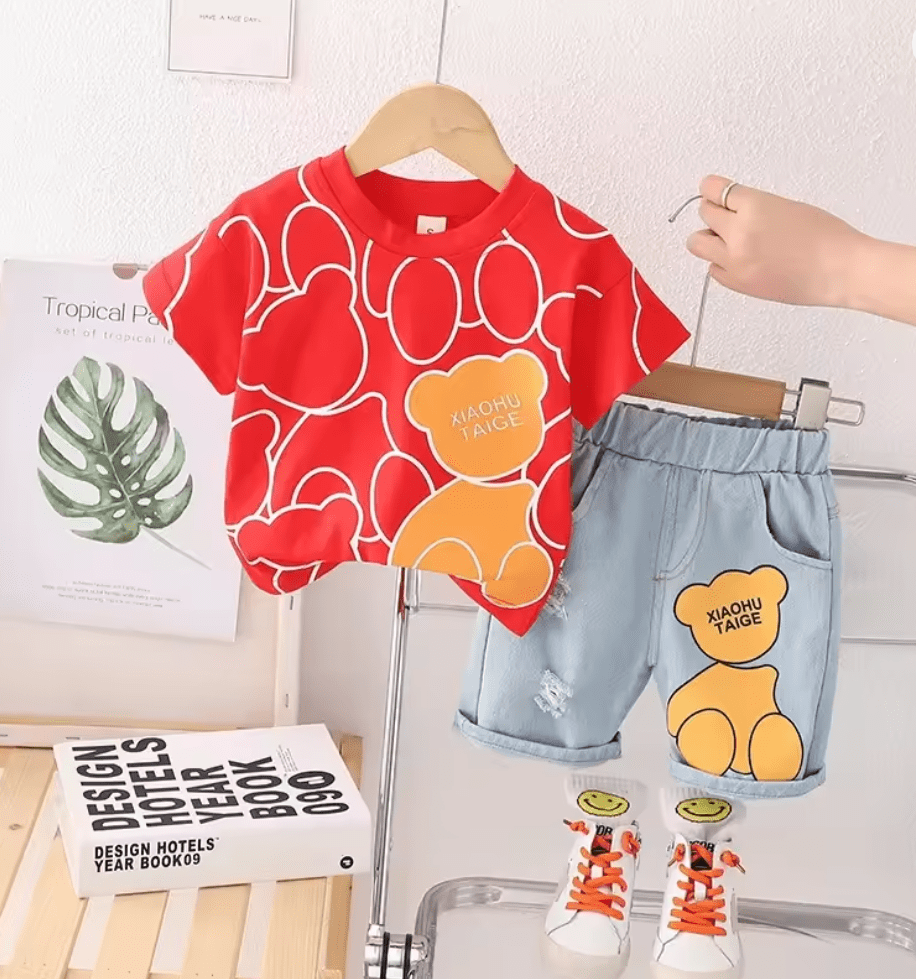 Be the first to review “Bear Pattern Red T Shirt WIth Blue Denim Pant Design”