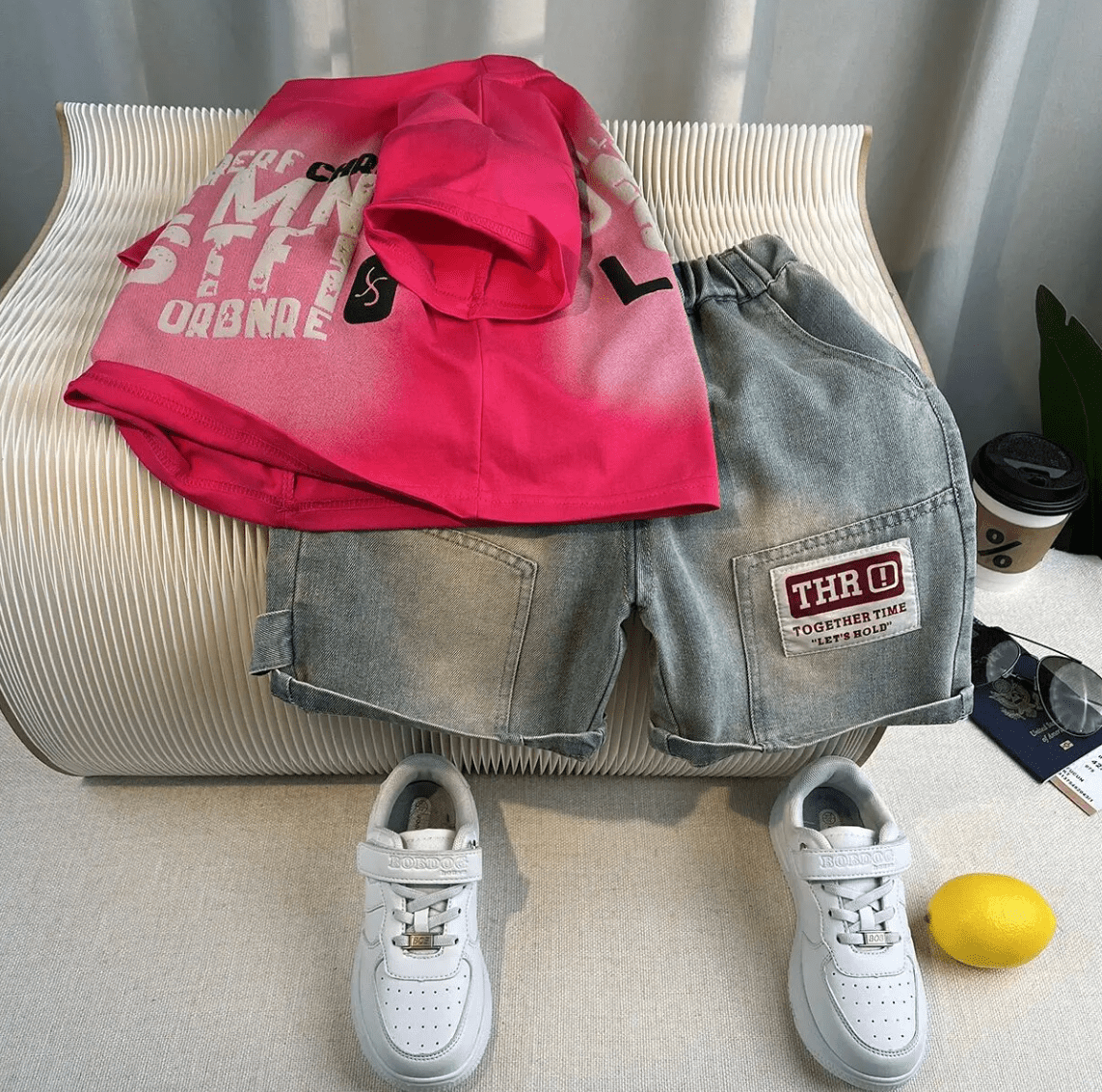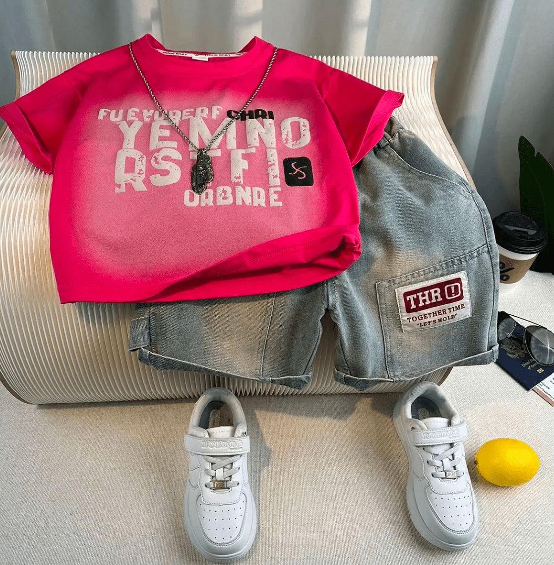 Pink Red Letter Print T Shirt And Denim Pant Design
