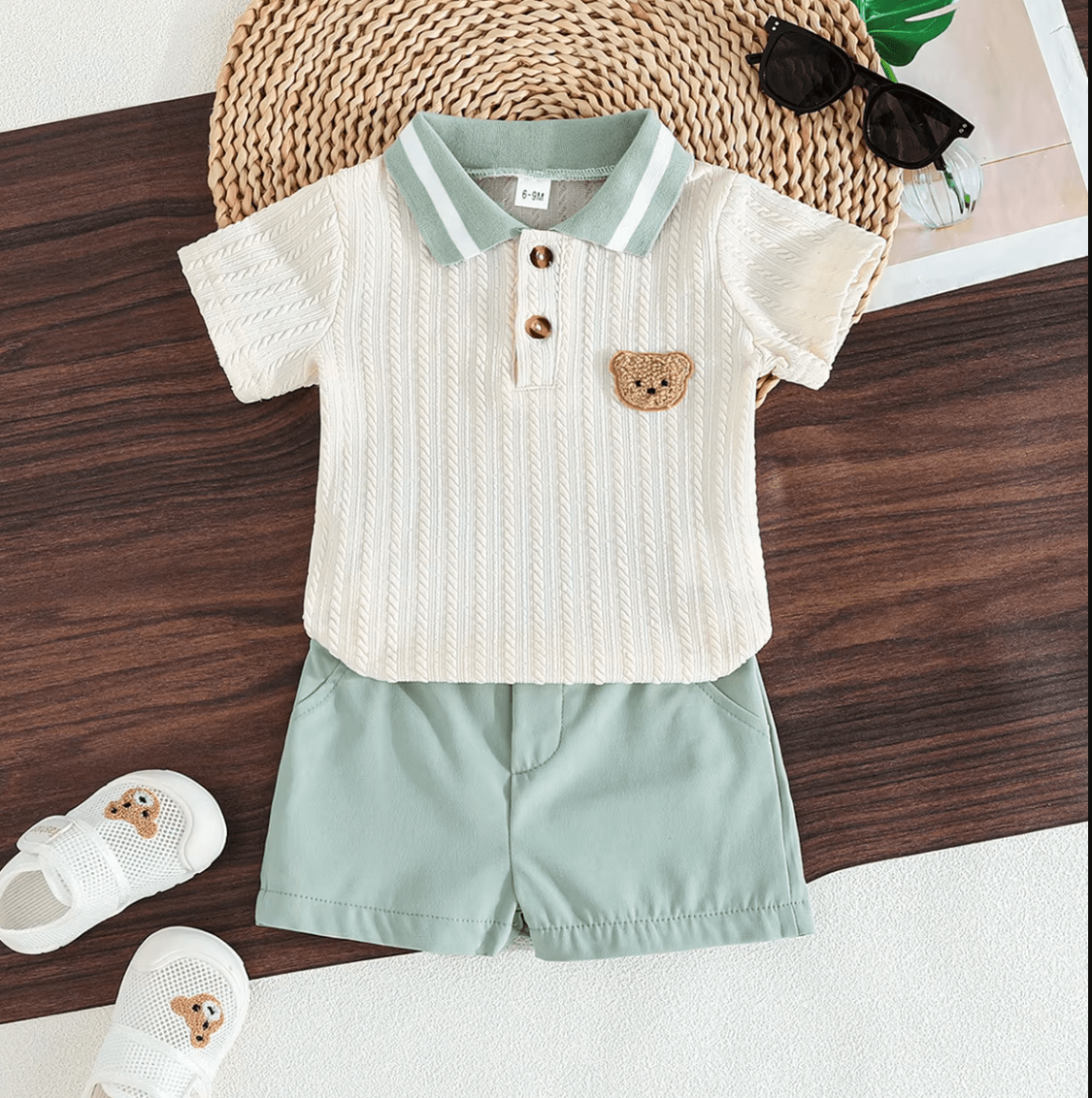 Be the first to review “White Bear Design Top And Light Green Comfortable Baby Dress”